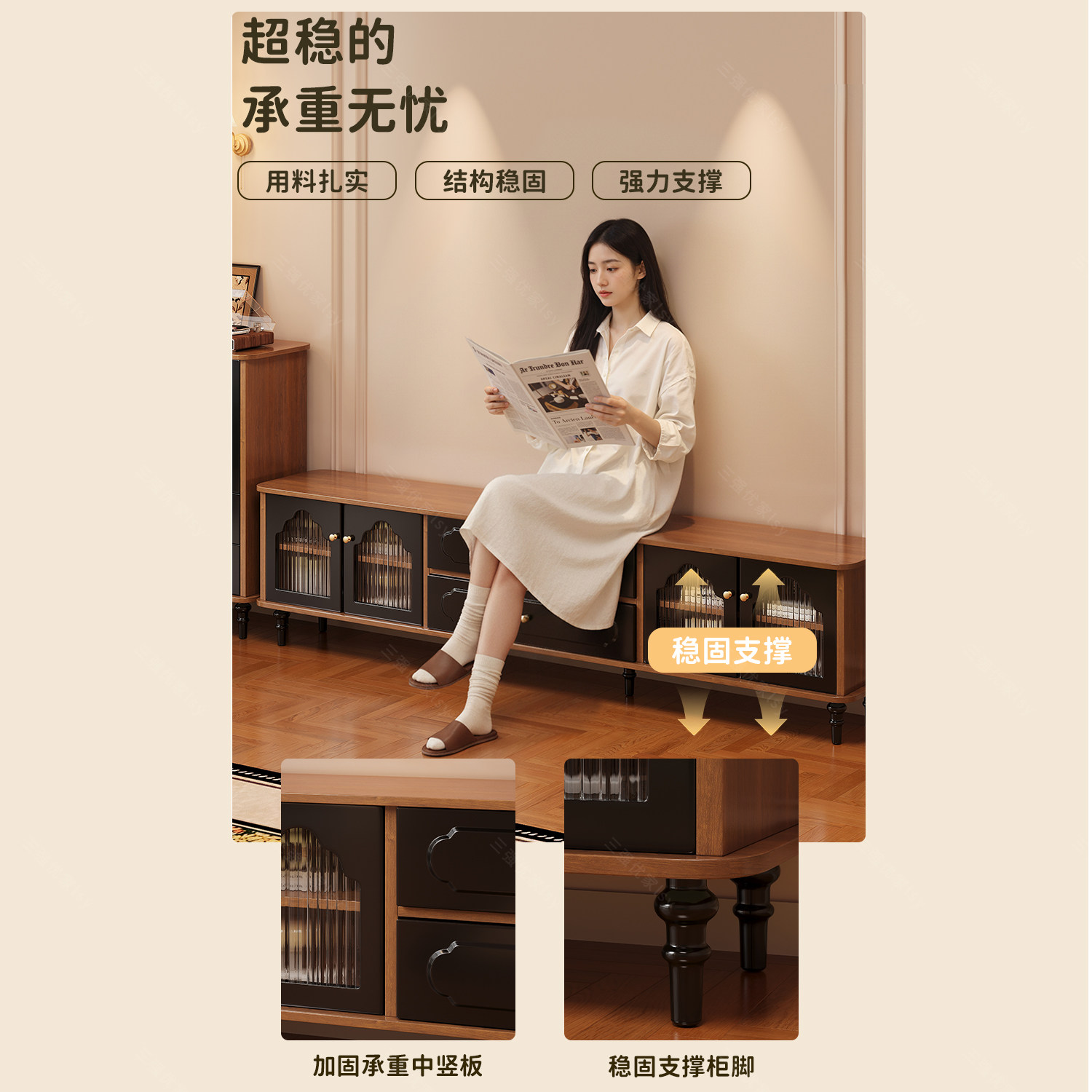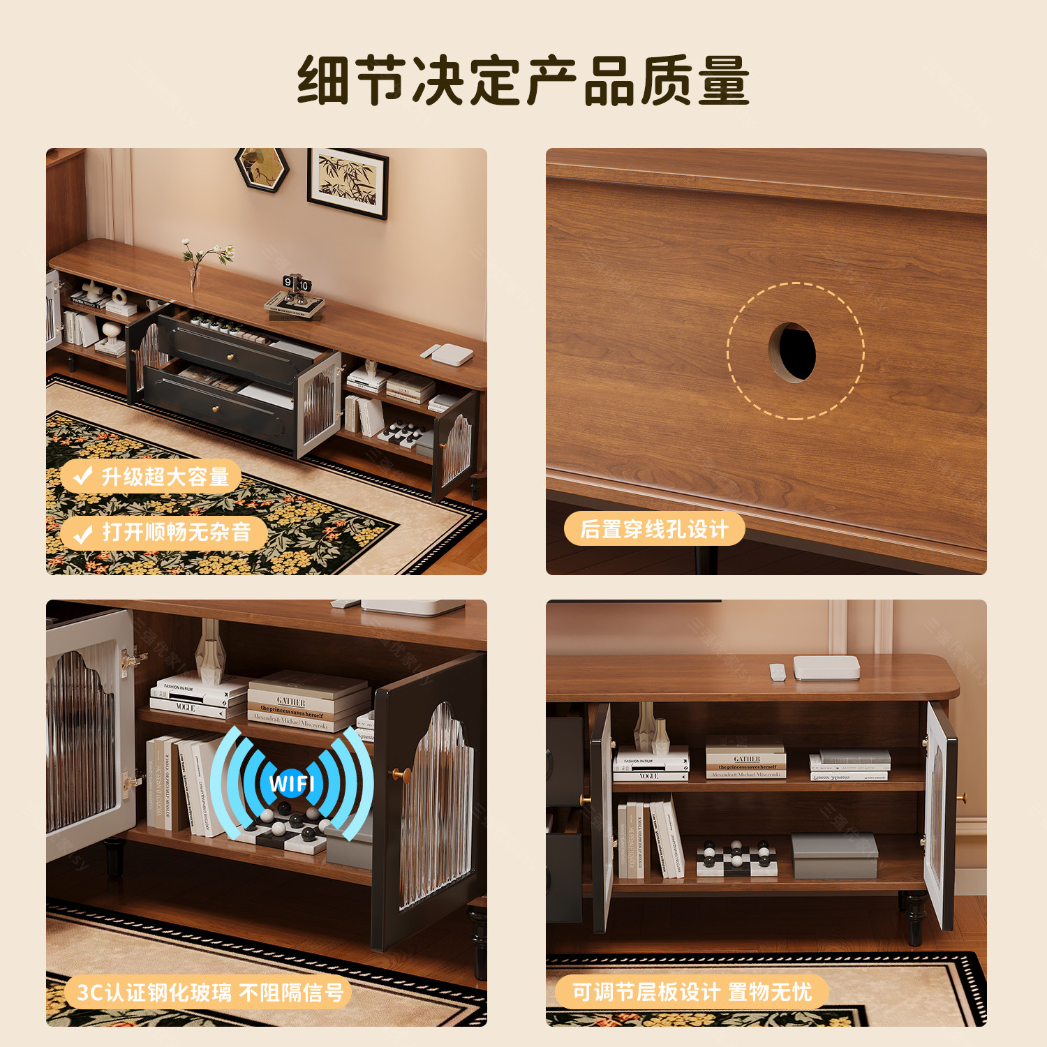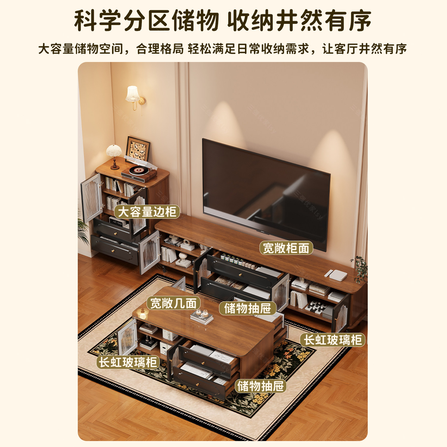 实木电视柜法式复古茶几电视柜组合落地储物柜子客厅家用收纳地柜