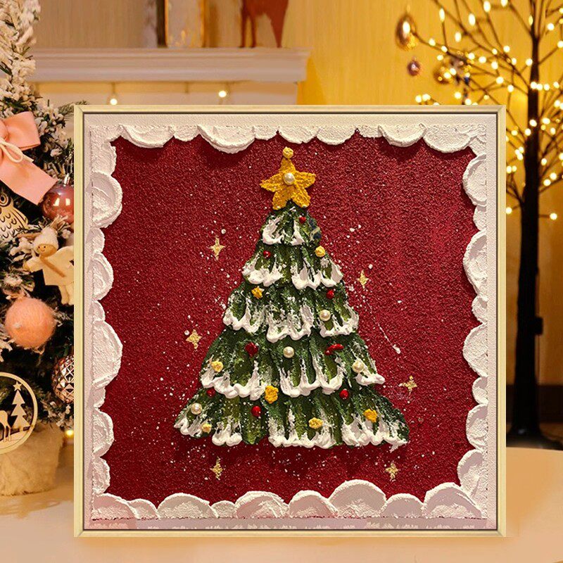 圣诞节diy肌理画材料手工石英砂丙烯立体圣诞老人节日装饰画礼物