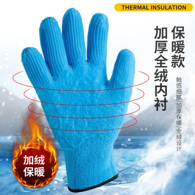 推荐理由:加厚加绒冬季双层防水保暖劳保手套防护防滑耐磨冷库工地钓鱼手套