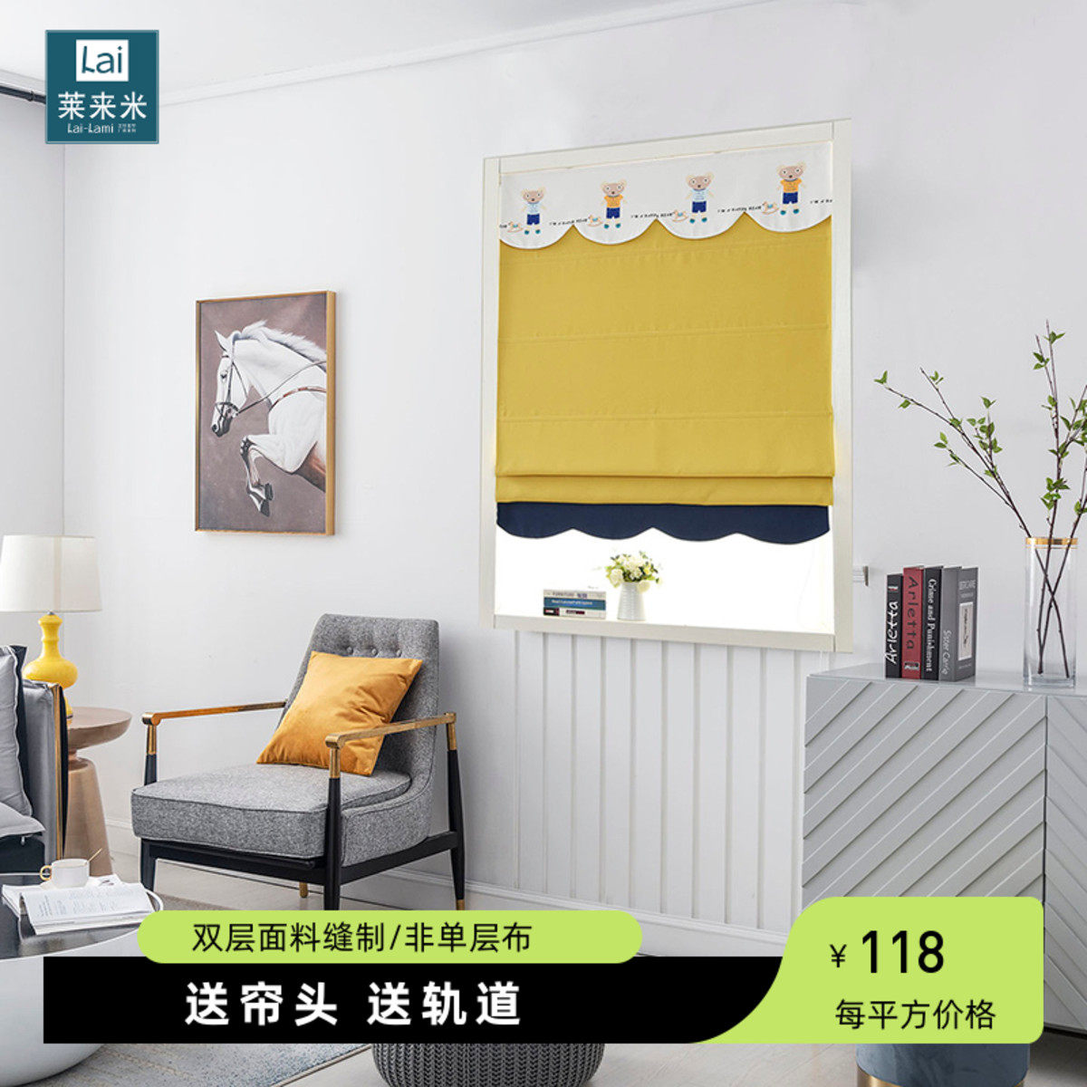 儿童房全遮光罗马帘窗帘拉卷式短窗小窗帘飘窗卧室卷帘男孩女孩房
