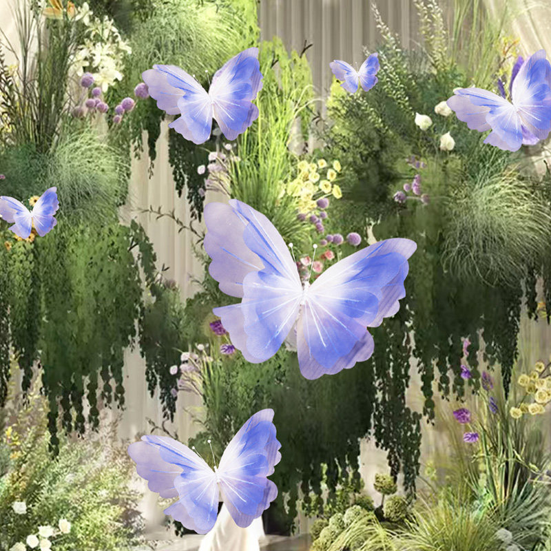 新款莫奈花园布置纱网蝴蝶真丝蝴蝶丝网蝴蝶花艺橱窗道具纸艺蝴蝶