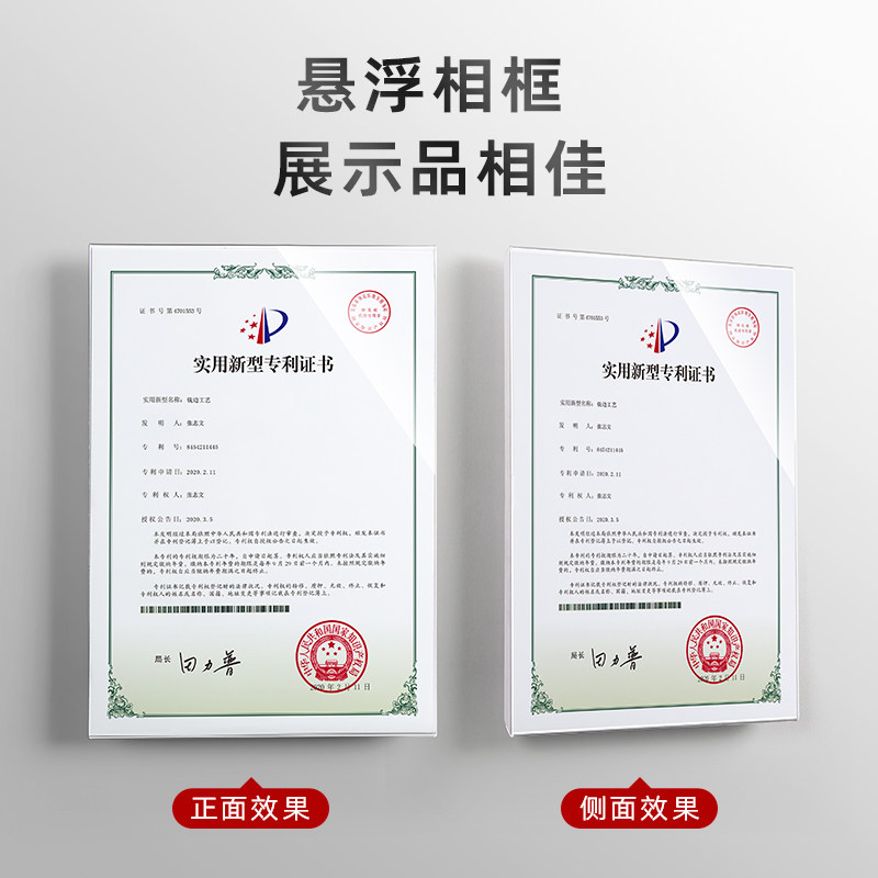 a4亚克力悬浮相框挂墙画框教师形象墙展示框奖状荣誉墙专利证书框