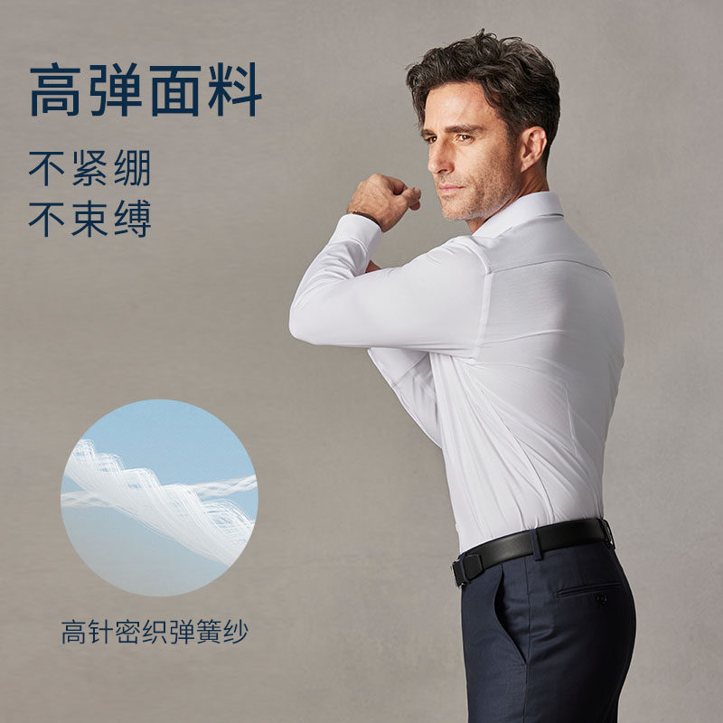 推荐理由:蹦床级高弹力衬衫 穿着不勒 免烫抗皱
