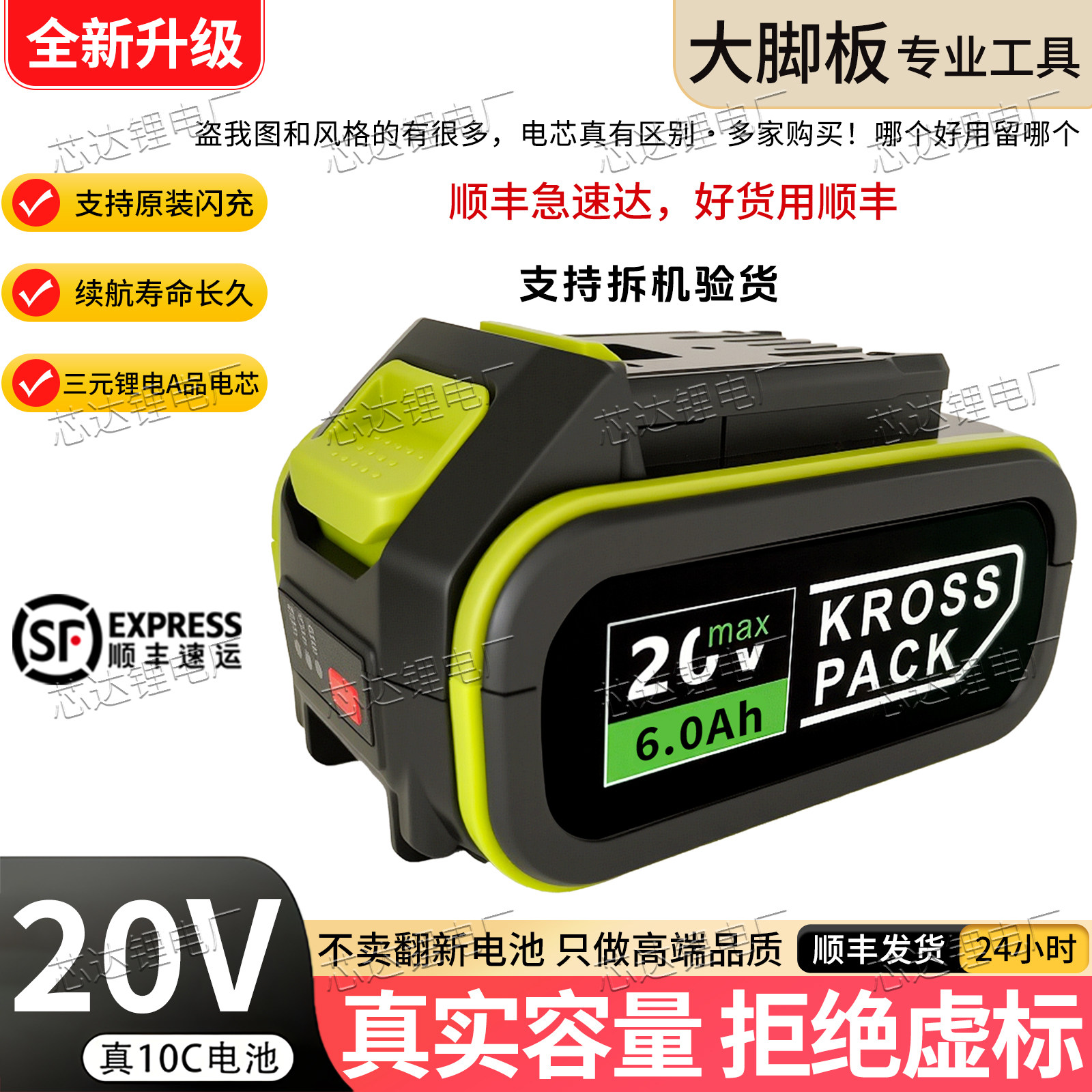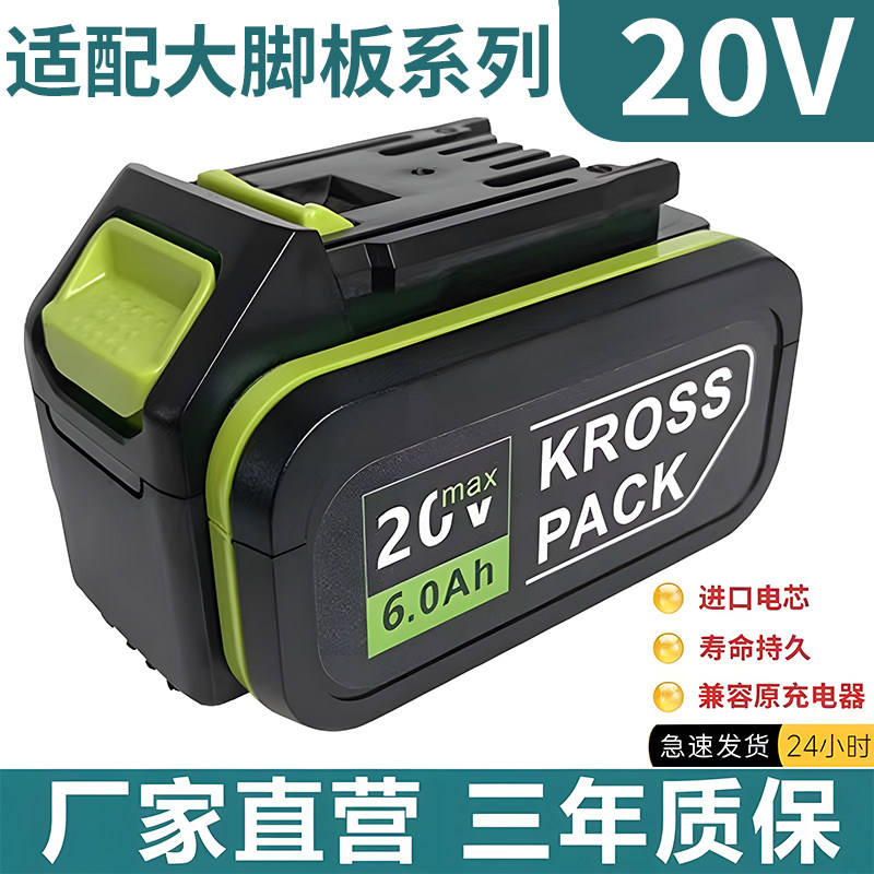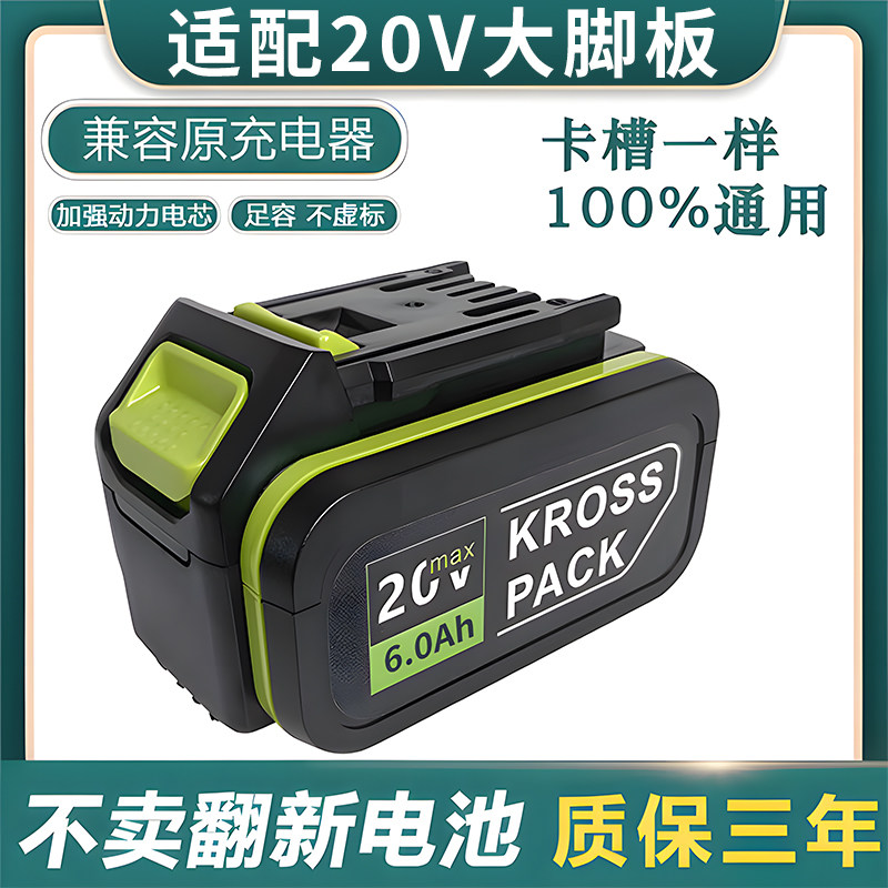 威克士大脚板锂电池20V电动扳手电钻6.0Ah角磨机电锤马刀锯通用款