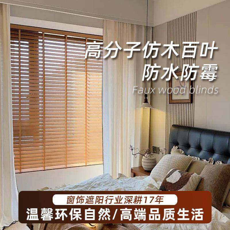 仿实木纹百叶窗帘轻奢卧室厨房卫生间浴室遮阳光防水阻燃百叶厂家