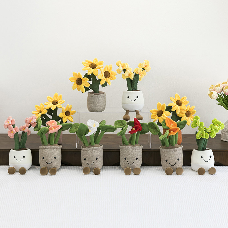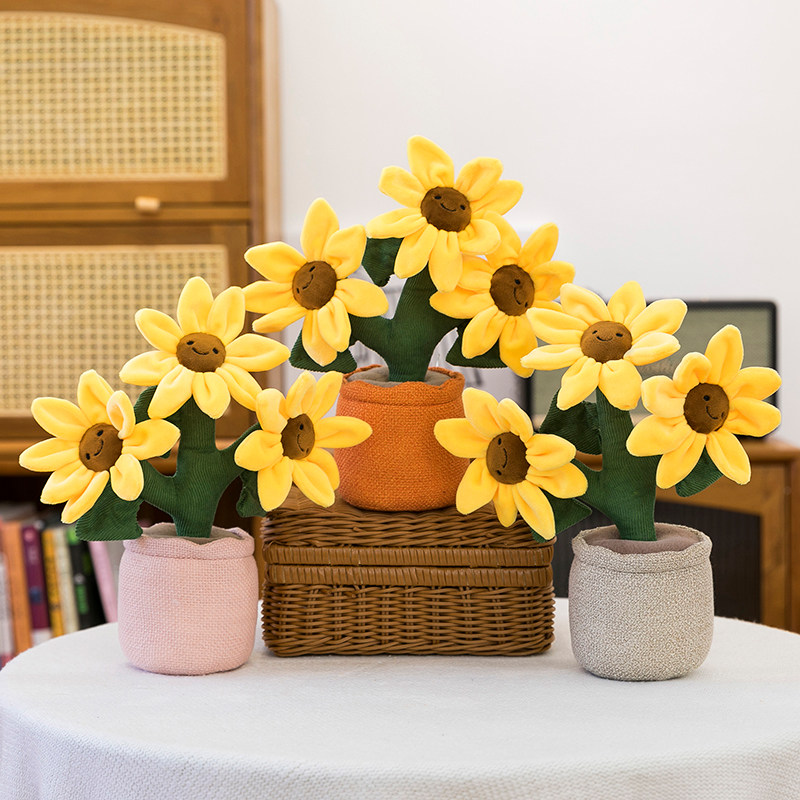 仿真花朵可爱卡通趣味微笑太阳花盆栽毛绒玩具兰花玩偶阳台摆件女