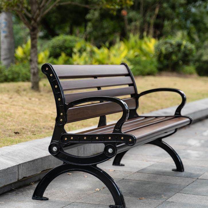 户外公园长椅金属防腐实木庭院室外带扶手靠背椅休闲简约结实长凳