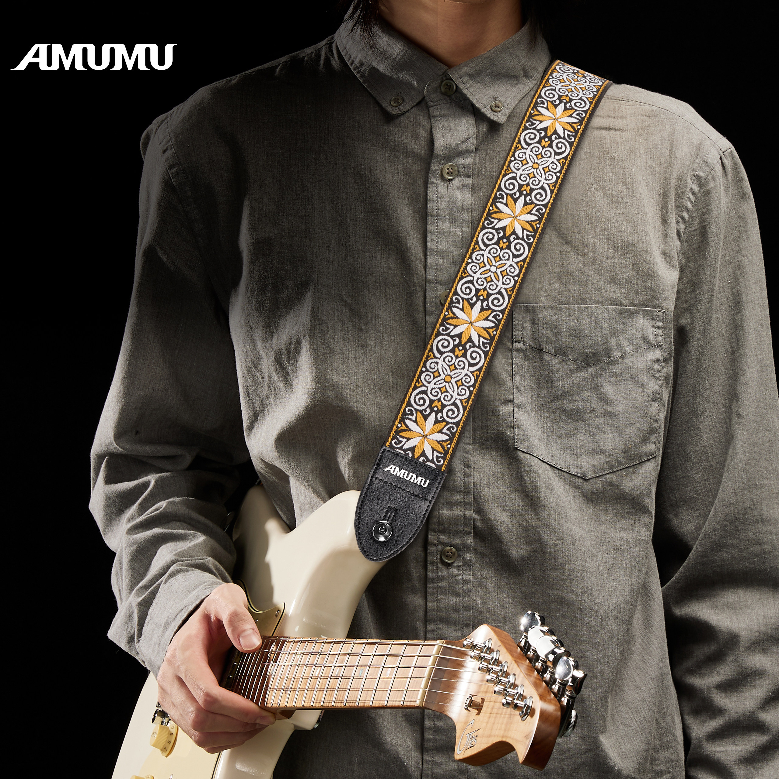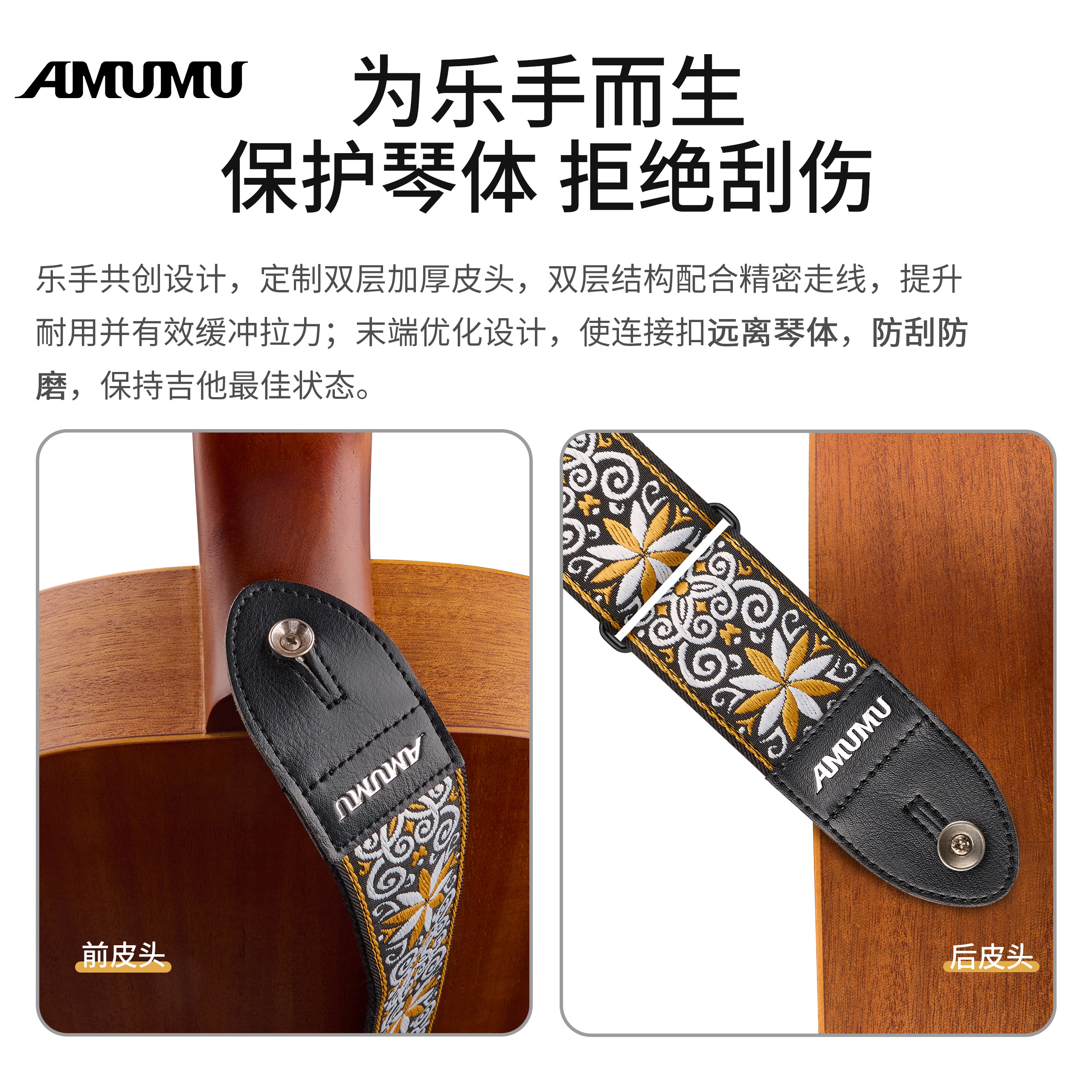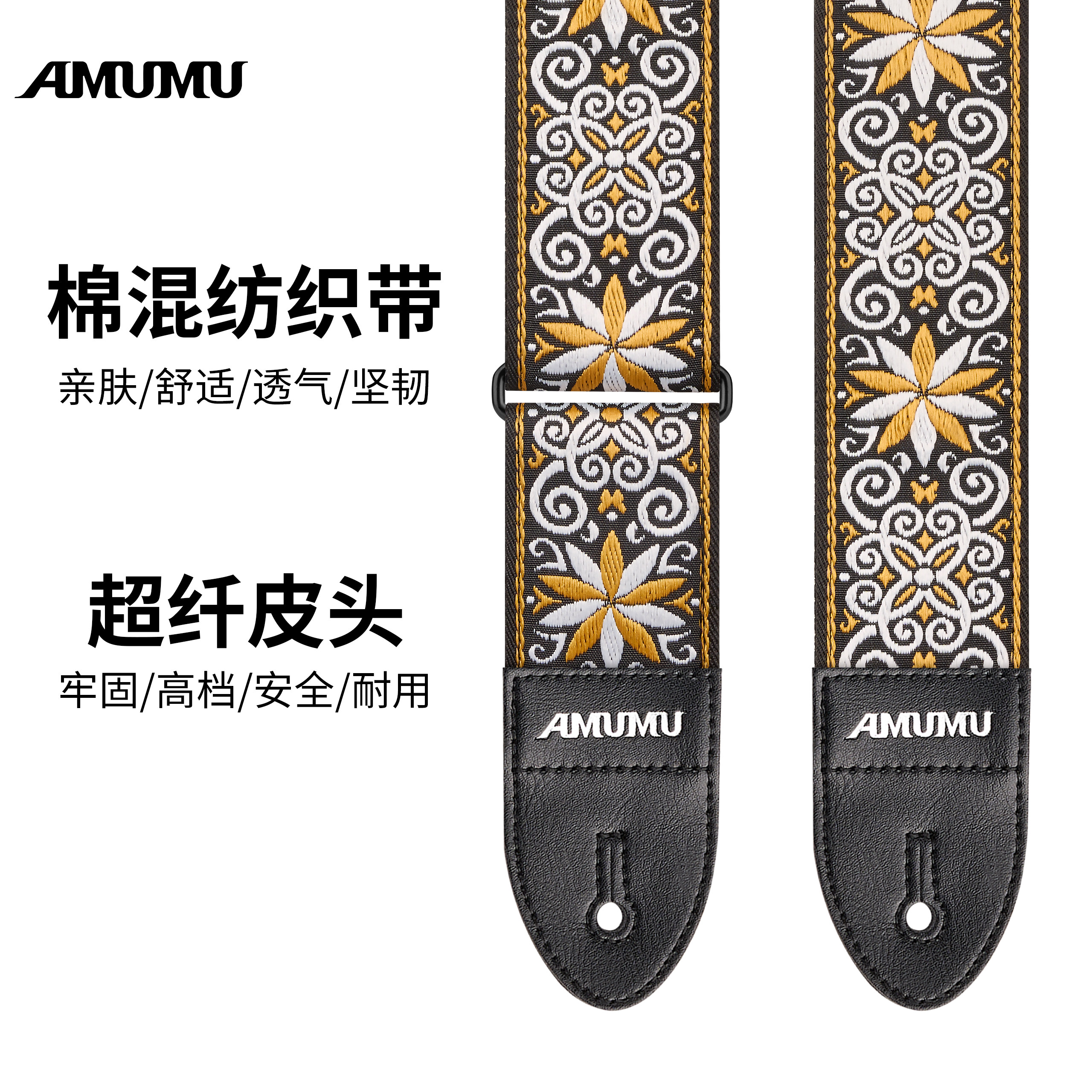 AMUMU木吉他背带男女生刺绣电吉他背带民谣复古贝斯乐器配件通用