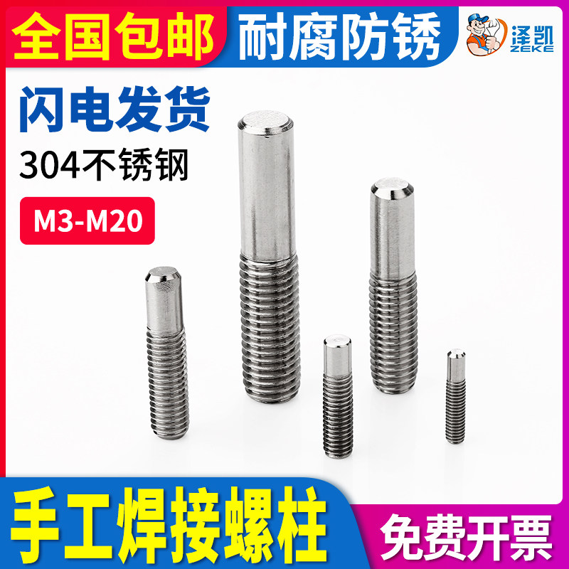 304不锈钢手工焊接螺柱螺丝钉螺栓半螺纹点焊柱植焊钉M8M10M12