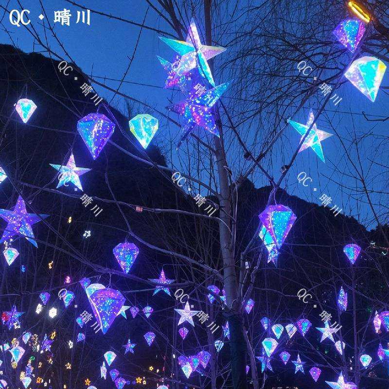 户外商业美陈幻彩发光钻石场景区街道具拍照打卡氛围吊挂装饰布置