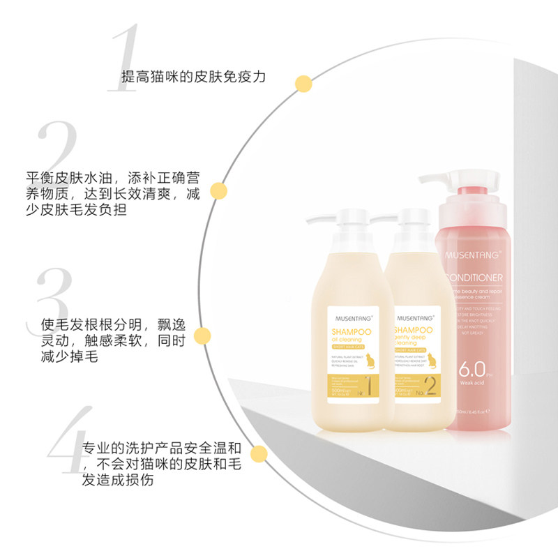 沐森堂猫咪浴液香波沐浴露短毛猫1号去油长毛猫2号防脱毛抑油淡香