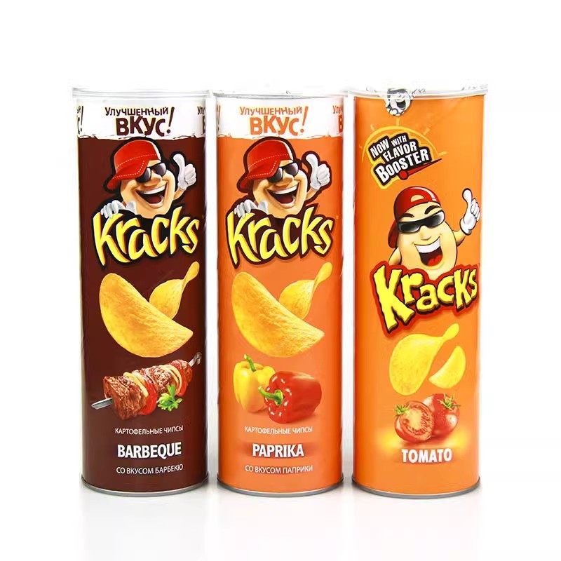 俄罗斯进口KRACKS薯片圆筒香辣小吃薯片膨化休闲零食桶装满包邮