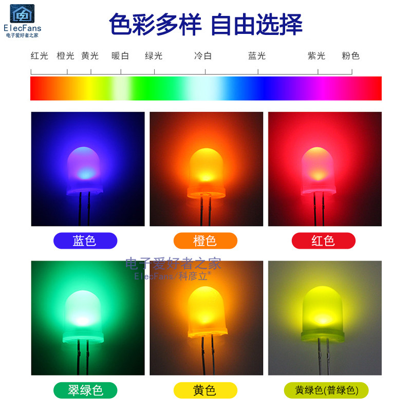 推荐理由:F10/10mm大圆头发光二极管 红色绿黄橙蓝光LED灯珠小指示灯发光管