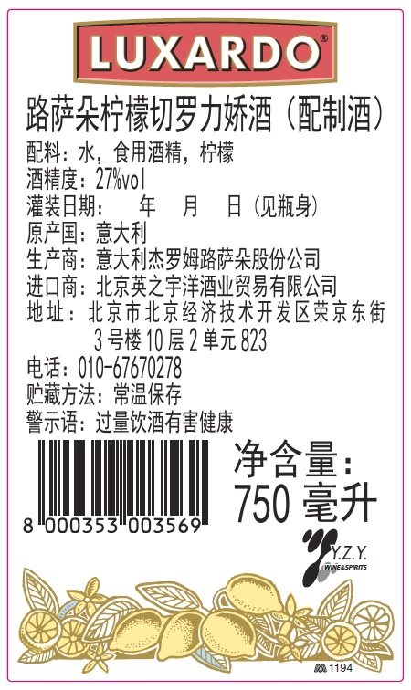 Luxardo Limoncello Liqueur 路萨朵柠檬切罗力娇酒 柠檬利口酒