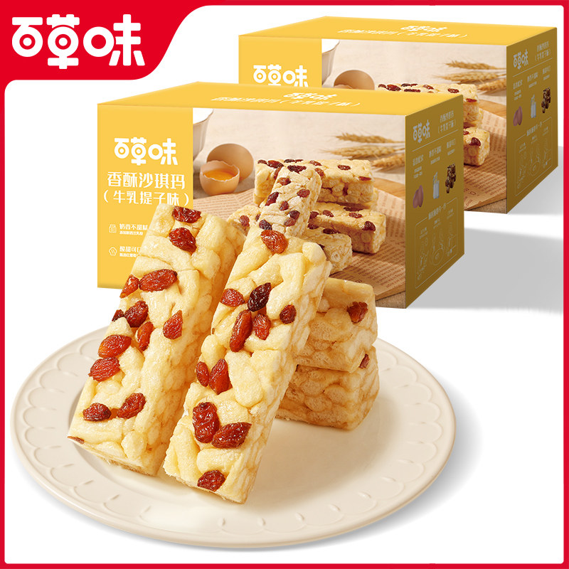 推荐理由:【多人团】百草味香酥沙琪玛500gx2牛乳提子解馋零食整箱包装