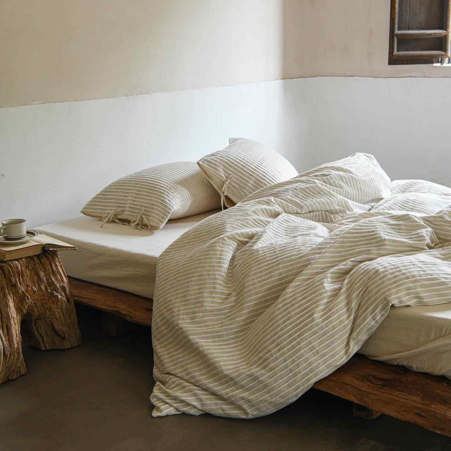 A类亚麻提花四件套简约色织提花亚麻水洗民宿裸睡无印条纹四件套