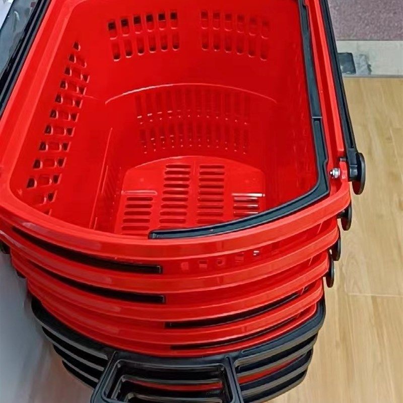 超市购物篮拉杆带轮塑料买菜手y提篮子便利店零食购物筐加厚超市