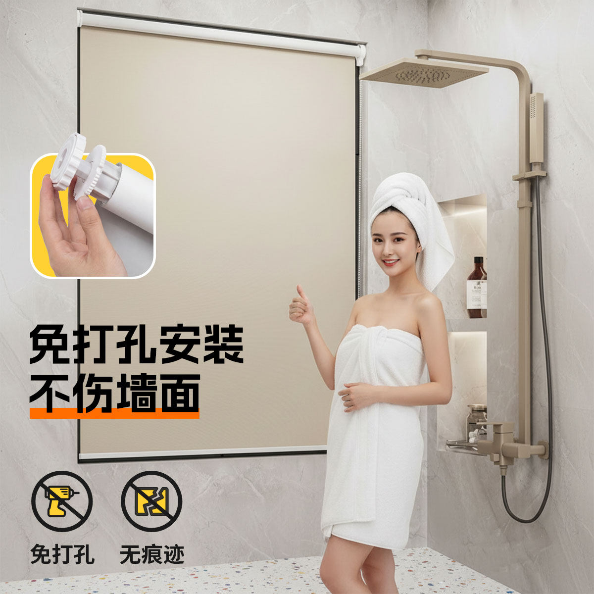 卫生间遮挡帘厨房窗户遮光窗帘厕所浴室专用防水防走光免打孔卷帘