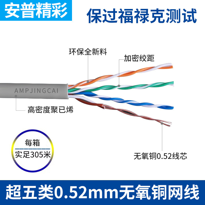 包邮安普超五类六类千兆监控无氧铜网线家用高速室外8芯网络300米