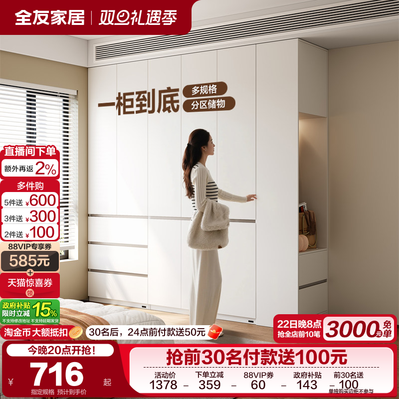 全友家居2025新款爆款成品衣柜家用卧室分段式衣橱洞洞板边柜家具