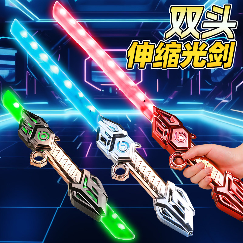 炫酷双头雷腾双刃网红爆款伸缩滑动激光剑儿童发光宝剑玩具男孩子