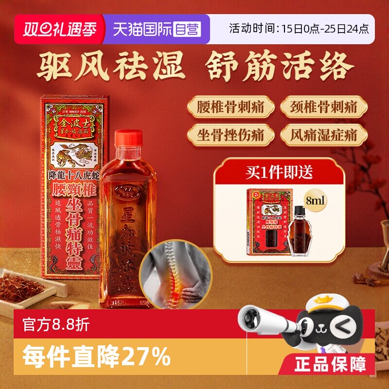 【自营】金波士降龙十八虎蛇腰颈椎坐骨痛特灵跌打损伤灵油活络油