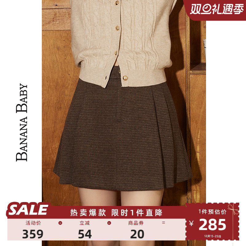 BANANA BABY2025年冬季新款复古格纹半身裙女高腰小个子时尚短裙