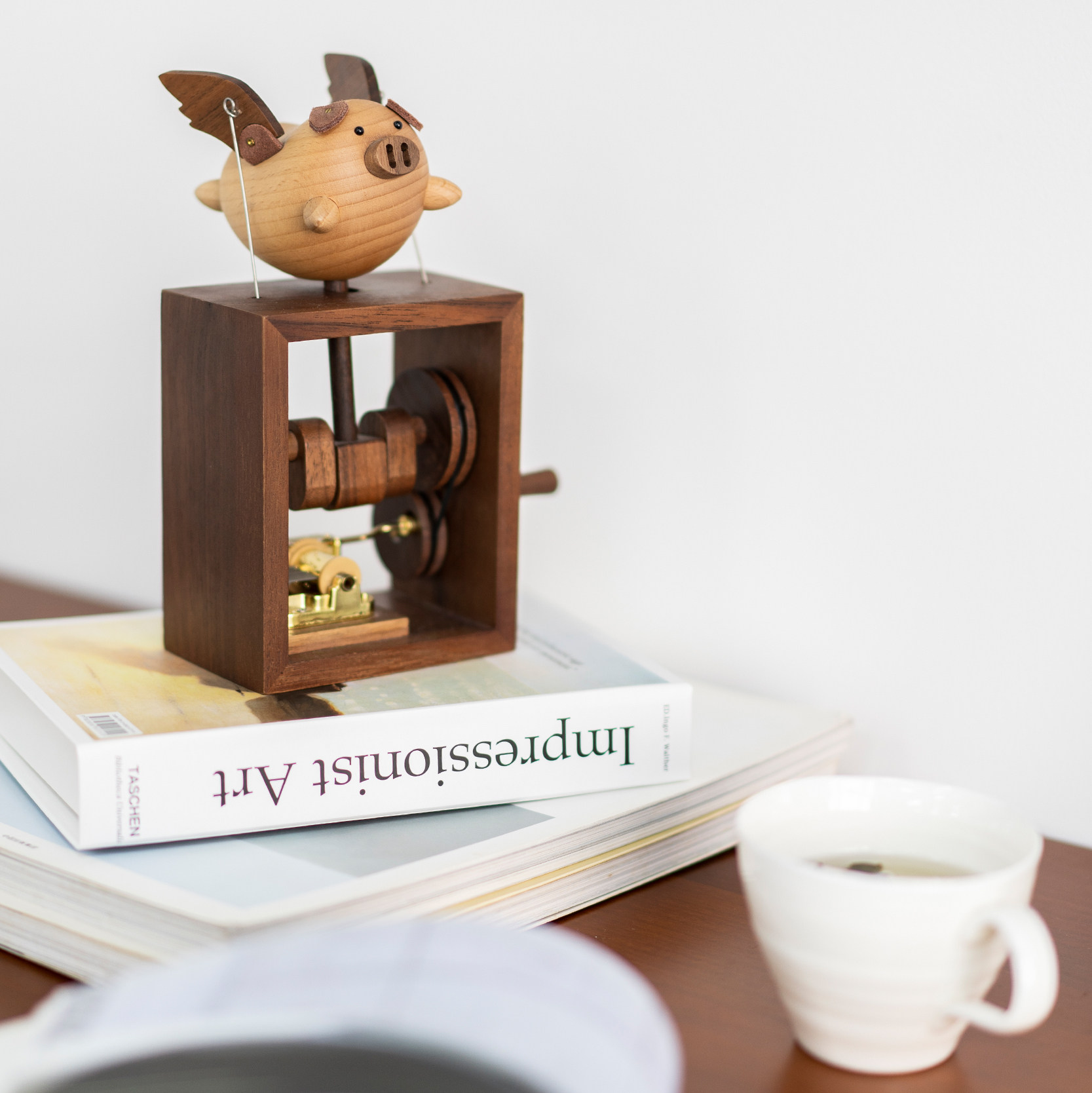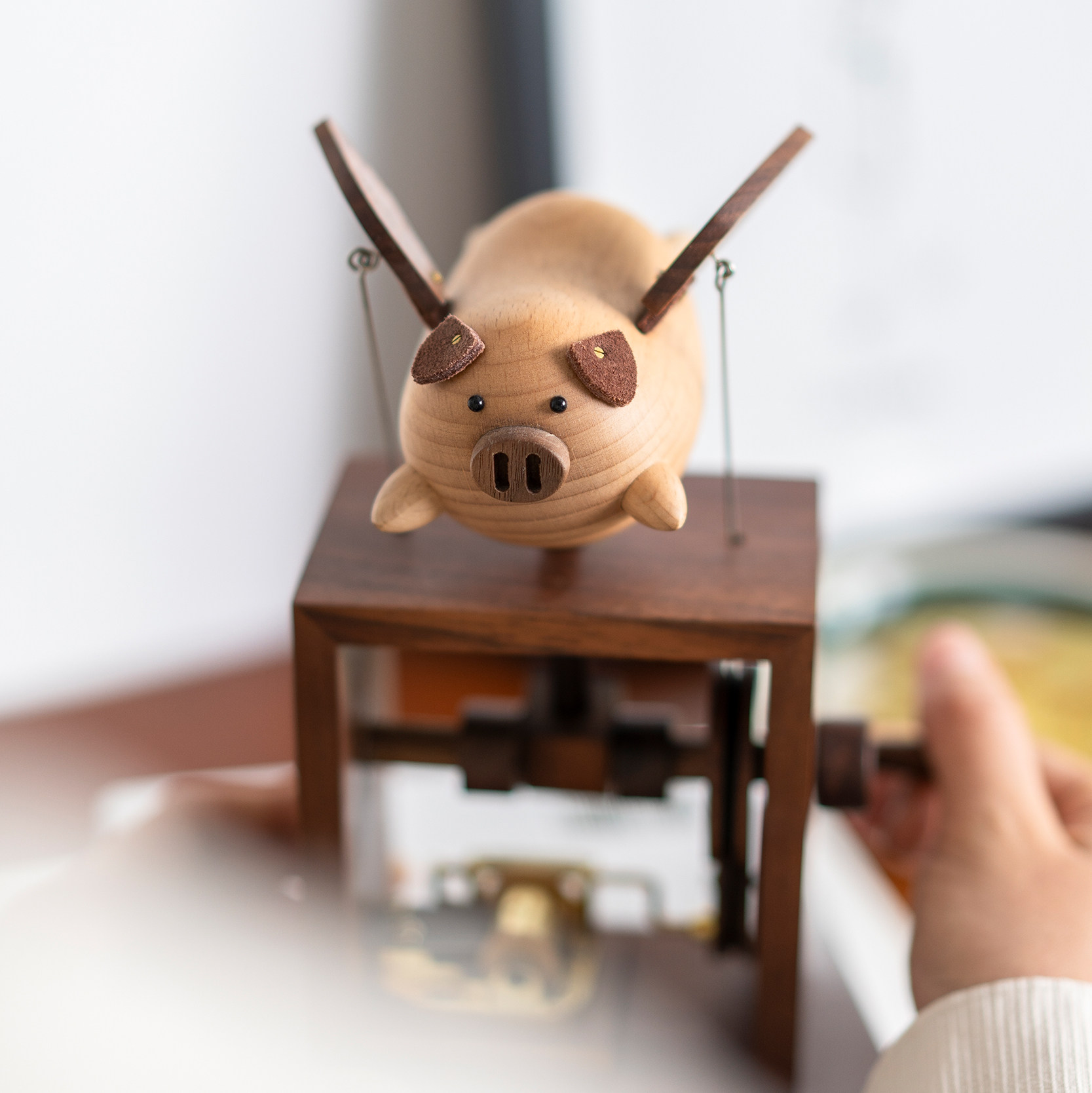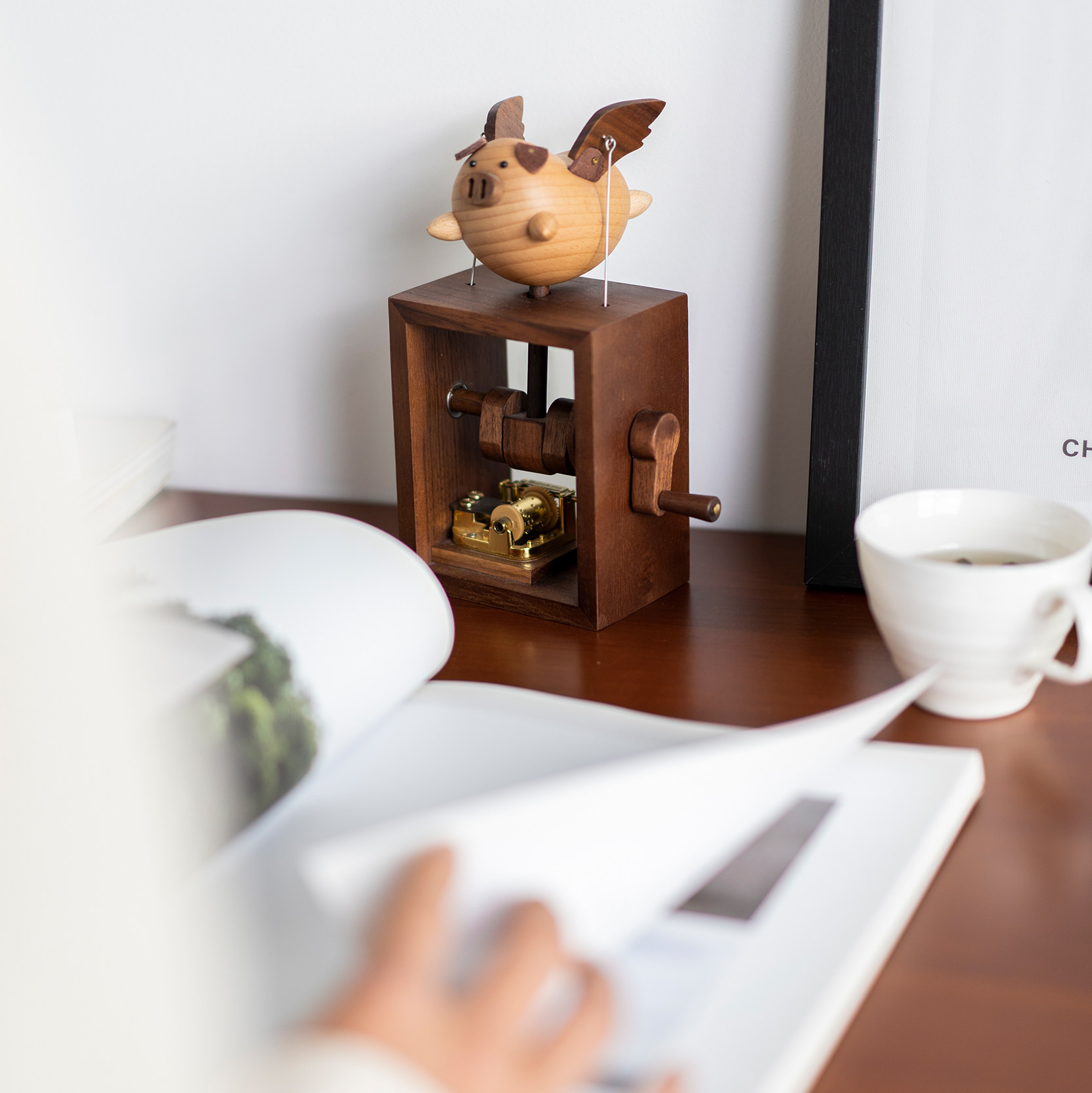飞猪八音盒/手摇木质飞天小猪会动八音盒桌面摆件儿童生日礼物
