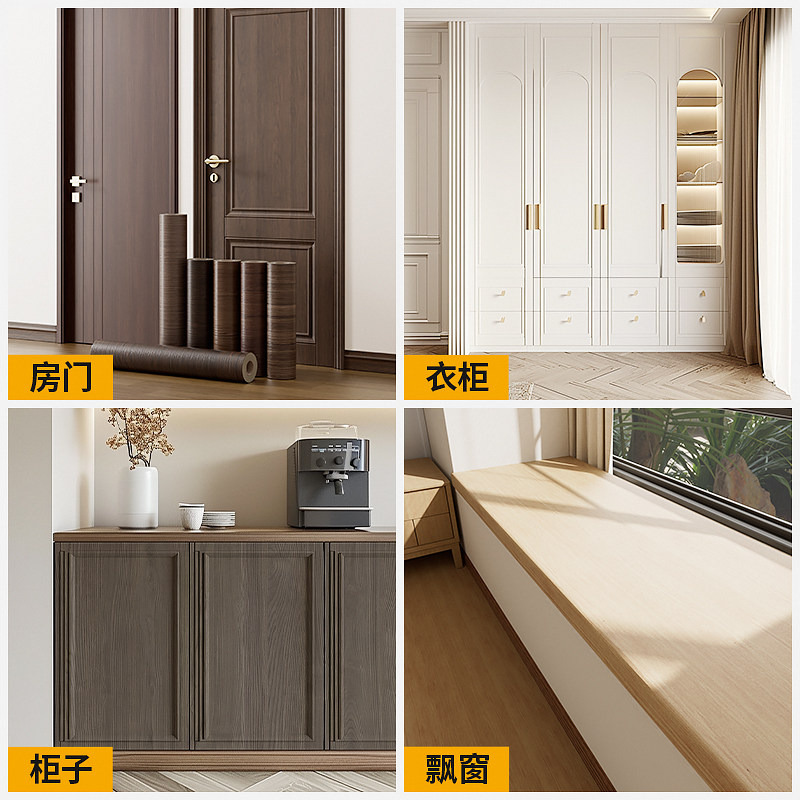 推荐理由:工程级木纹贴纸加厚木饰面贴皮家具翻新改色厨柜子门自粘防火墙纸