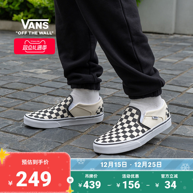Vans范斯官方 Asher黑白棋盘格夏日一脚蹬男女帆布鞋