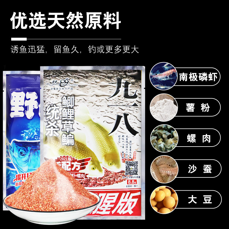推荐理由:老三样饵料套餐野钓鲫鱼鲤鱼老鬼918野战蓝鲫九一八速攻2套装鱼饵