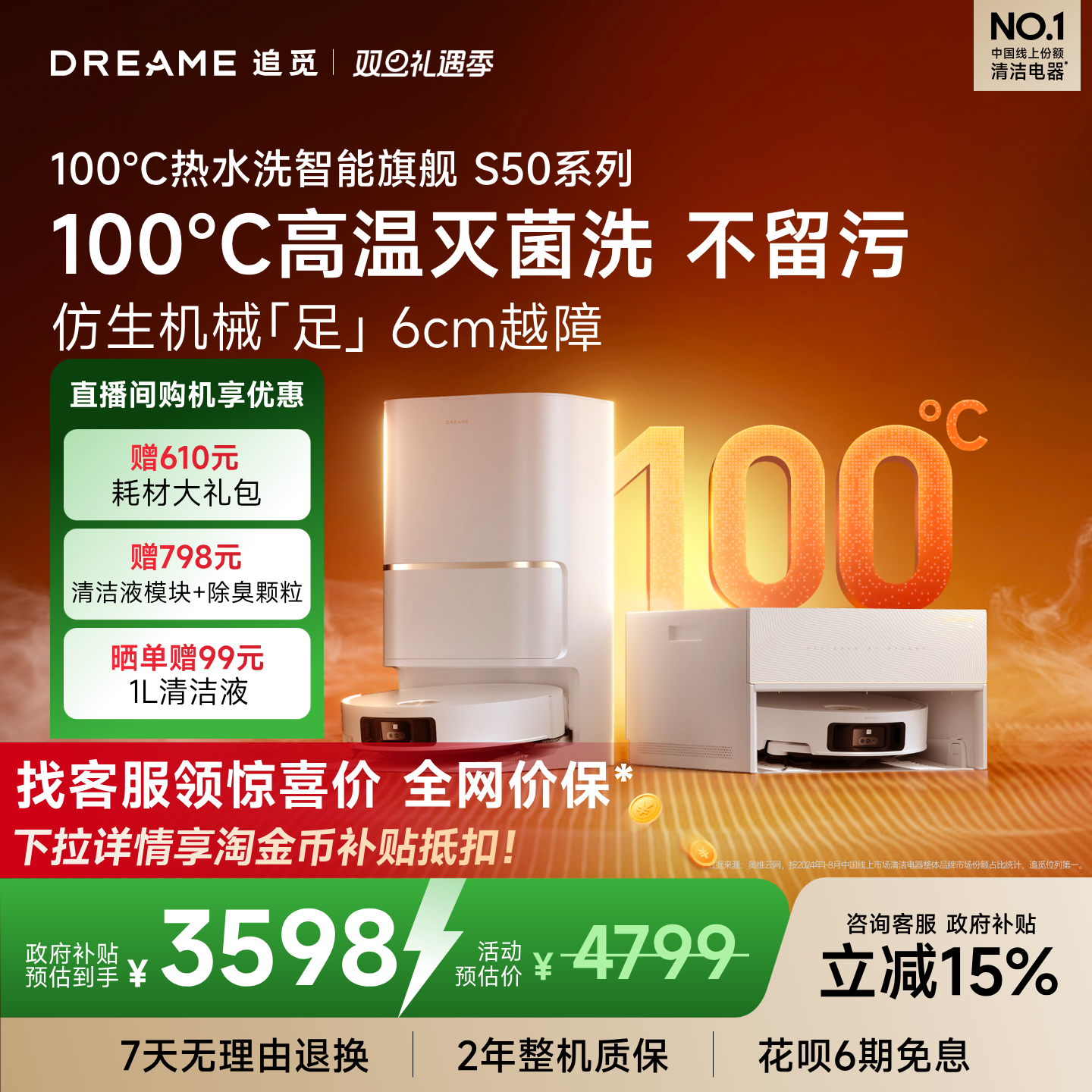 【国补15%】追觅S50Pro扫地机器人扫拖地一体100℃热水洗6cm越障