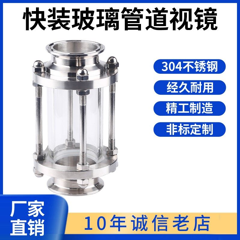快装玻璃管道视镜304不锈钢卫生级卡箍式直通快接视盅带牀包38
