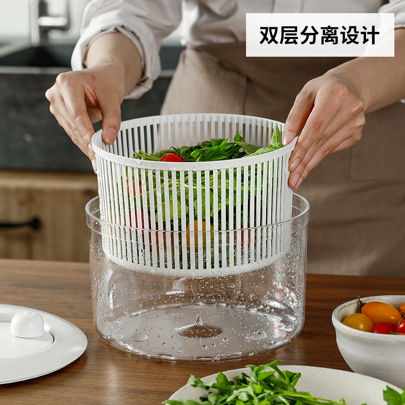 日本进口蔬菜脱水器水果沙拉甩水神器手动甩干机甩菜器沥水洗菜篮
