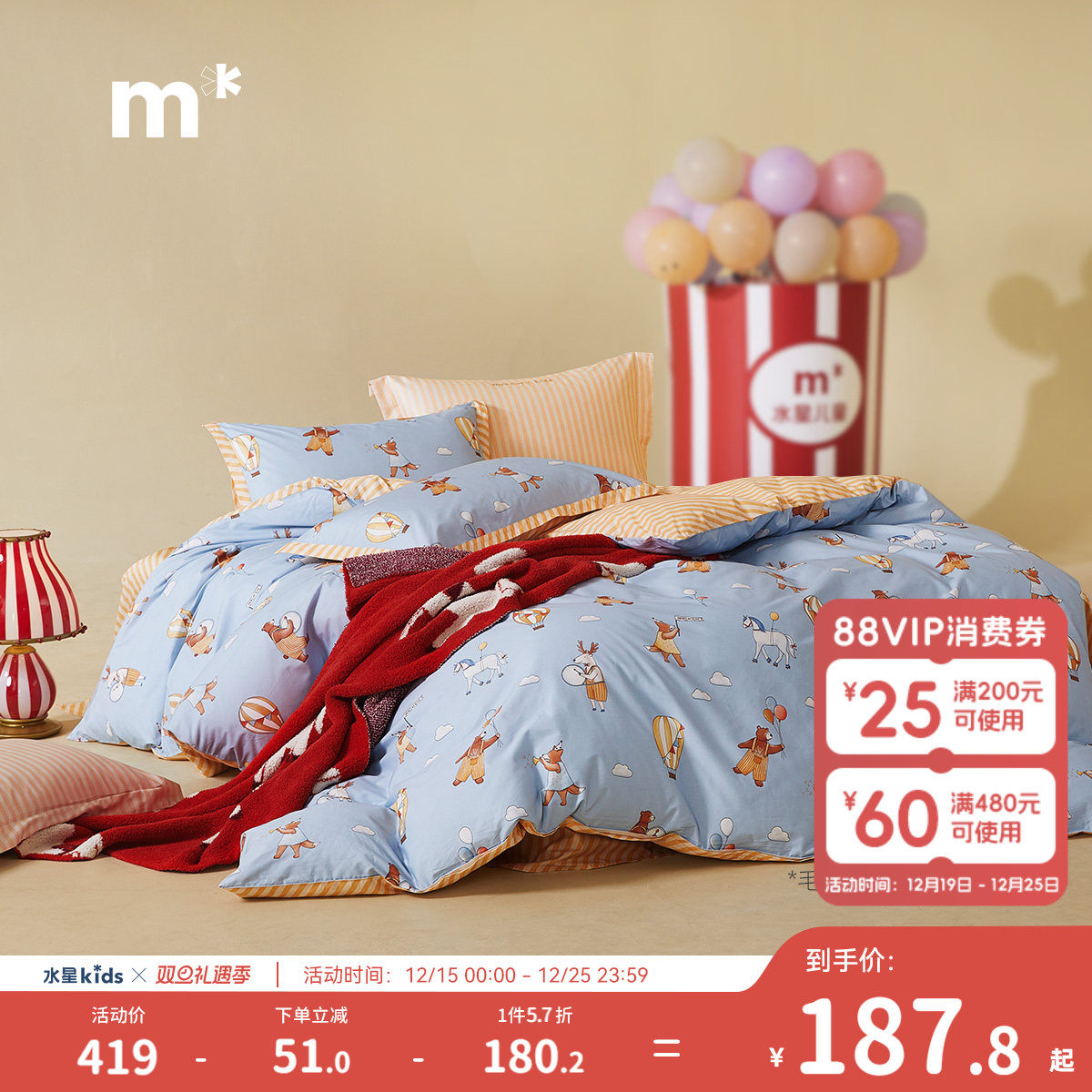 推荐理由:水星儿童四件套母婴A类纯棉卡通印花100全棉三件套云端欢乐秀套件