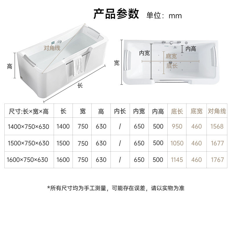 推荐理由:优质亚克力保温 PU双枕靠背 气泡水力按摩