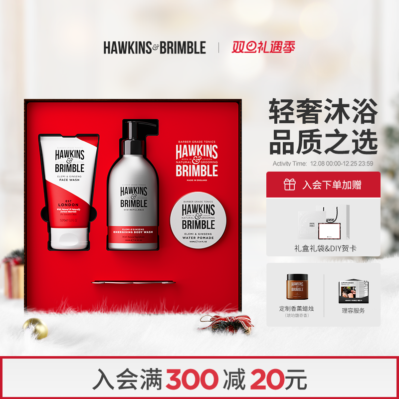 【圣诞礼物】HAWKINS霍金斯沐浴露礼盒小银罐发油男士发蜡送老公