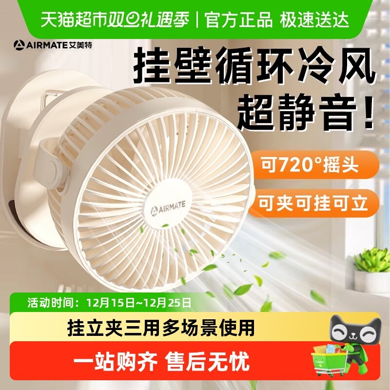 艾美特厨房挂壁电风扇厕所小夹扇卫生间免打孔夹式插电款家用迷你
