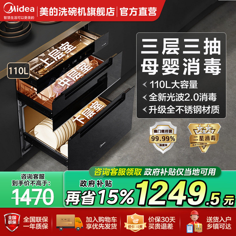 【政府补贴】美的消毒柜家用小型三层碗筷柜烘干一体110Q21Pro