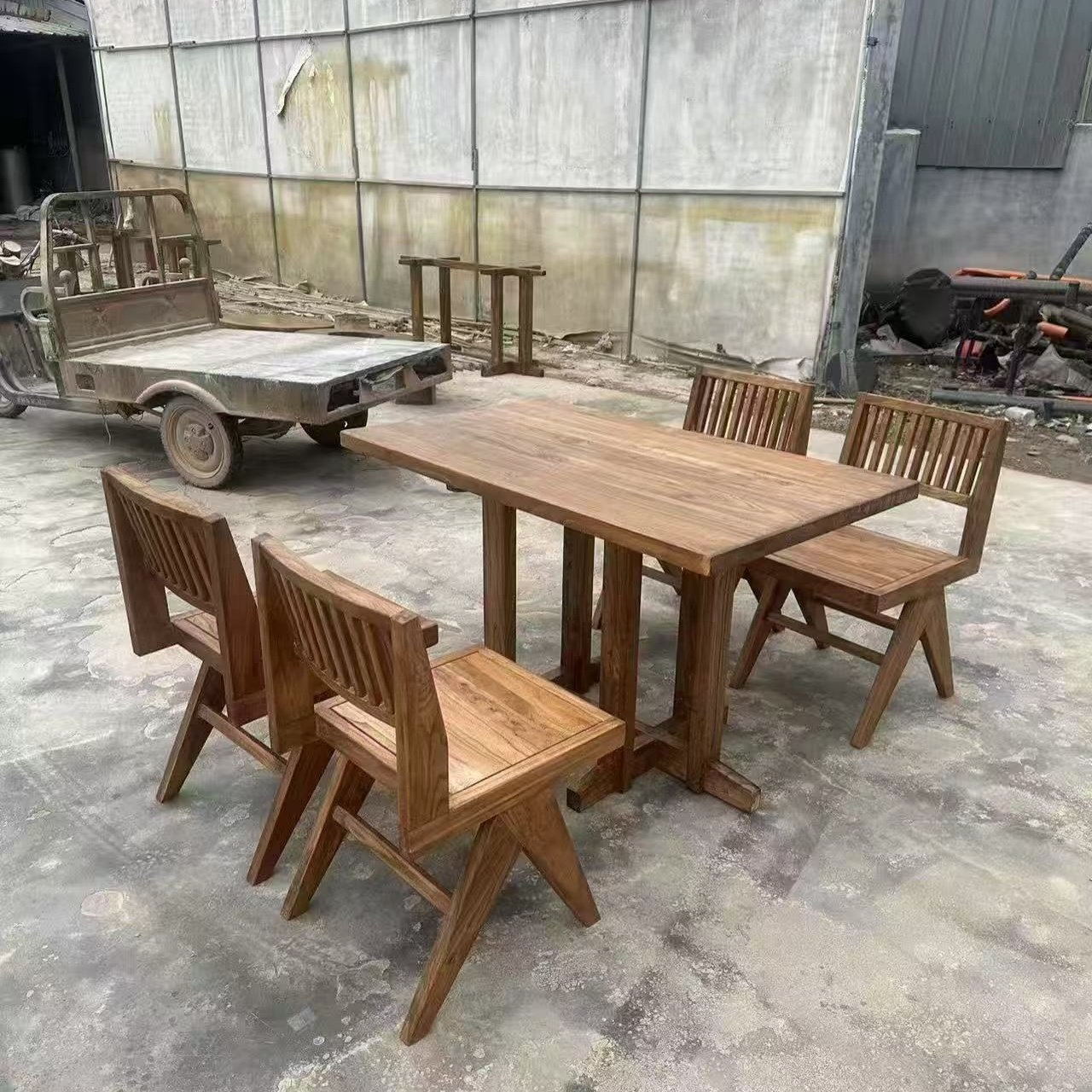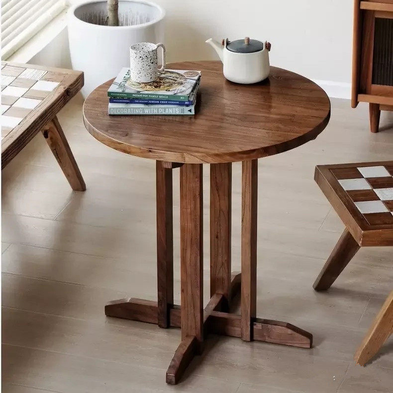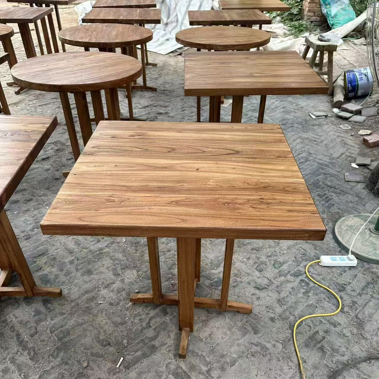 实木方桌酒馆咖啡厅酒吧餐桌民宿老榆木桌子侘寂风原木休闲桌定制