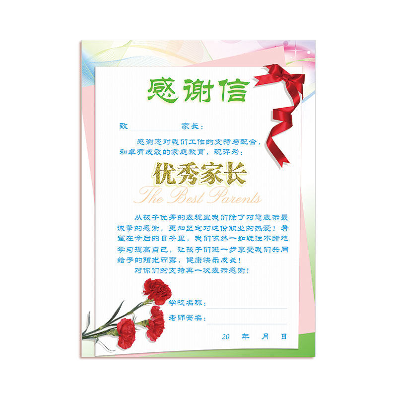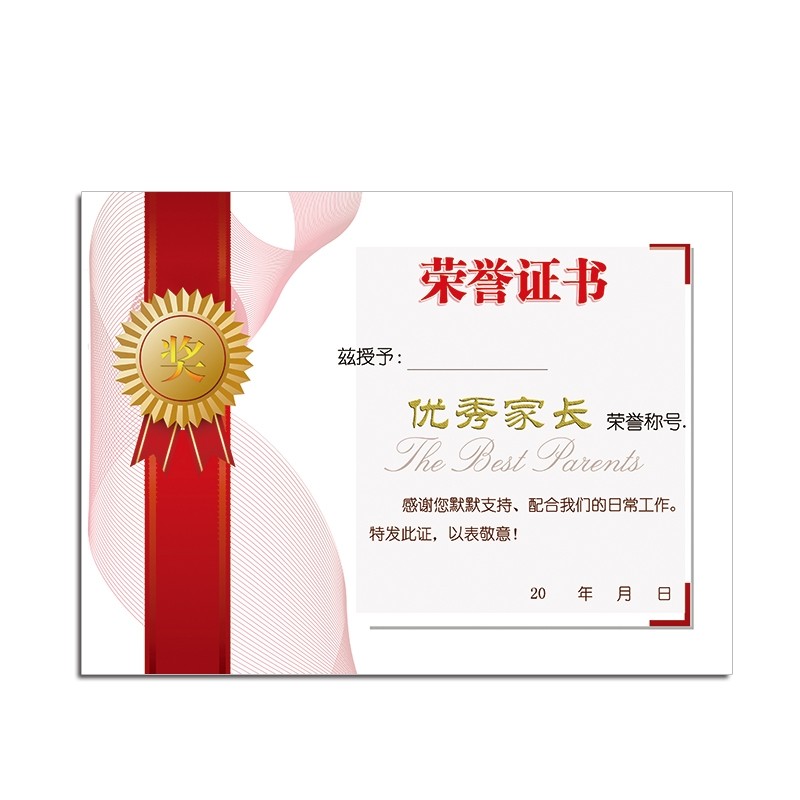 优秀家长证书感谢信奖状高档卡通可爱创意奖状纸批发正品包邮