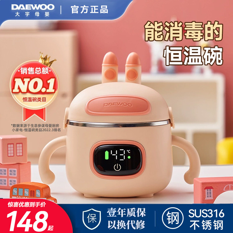 大宇宝宝保温碗充电儿童婴儿防摔免注水智能恒温碗辅食316不锈钢