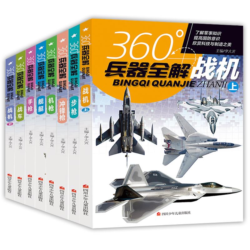 全套8册360度世界兵器全解儿童学生军事武器大百科全书6-8-15岁关于枪的科普书籍知识和常识介绍步枪冲锋枪机枪舰艇手枪战车战机枪