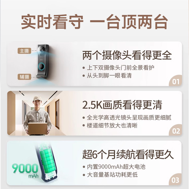 推荐理由:2.5K双摄可视门铃 免布线免打孔