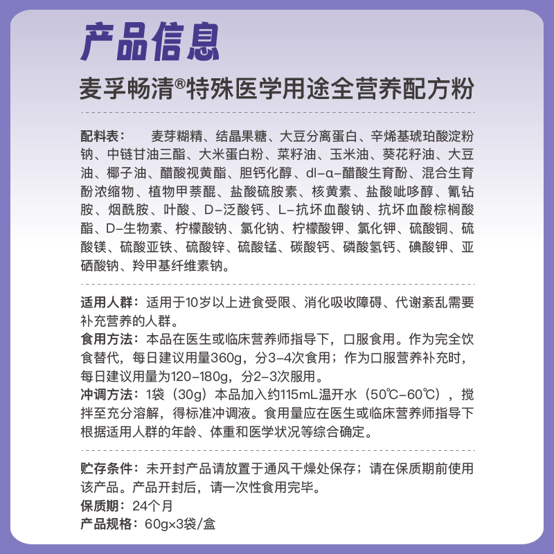 推荐理由:麦孚营养畅清特殊医学用途全配方粉大豆分离蛋白多种维生素矿物质