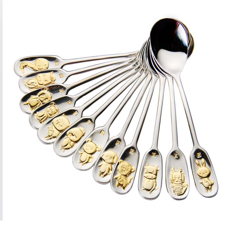 朗维304抗菌不锈钢长柄勺创意可爱十二生肖宝宝家用汤饭甜品勺子