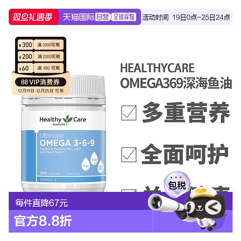 澳大利亚直邮Healthy Care欧米加3-6-9胶囊健康营养补充200粒