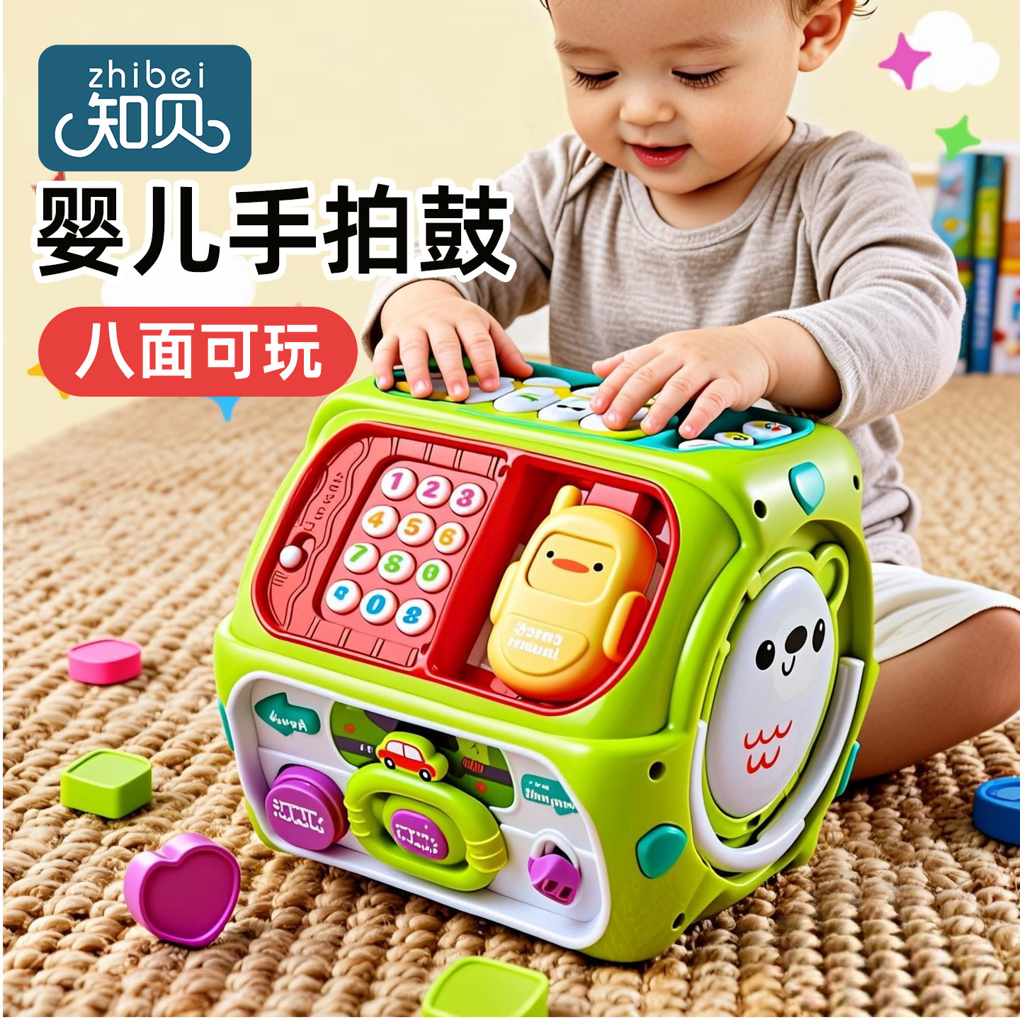 婴儿手拍鼓儿童拍拍益智早教0一1岁6-12个月宝宝玩具音乐八六面体