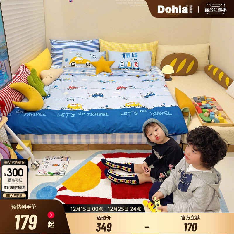 多喜爱卡通四件套纯棉全棉床上用品床单被套小汽车儿童三件套男孩