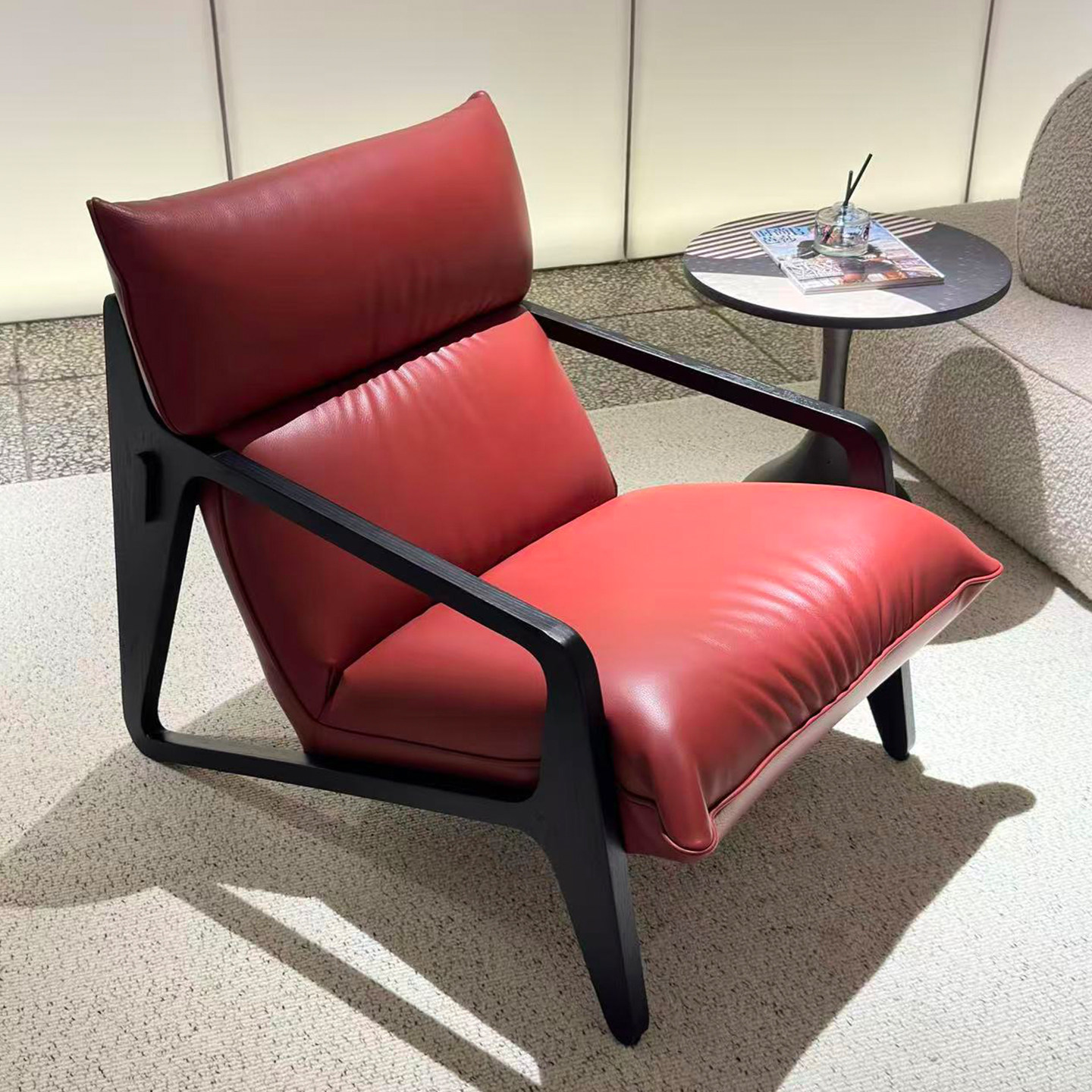 白蜡木全真皮休闲椅客厅家用民宿办公室接待洽谈椅原创设计沙发椅